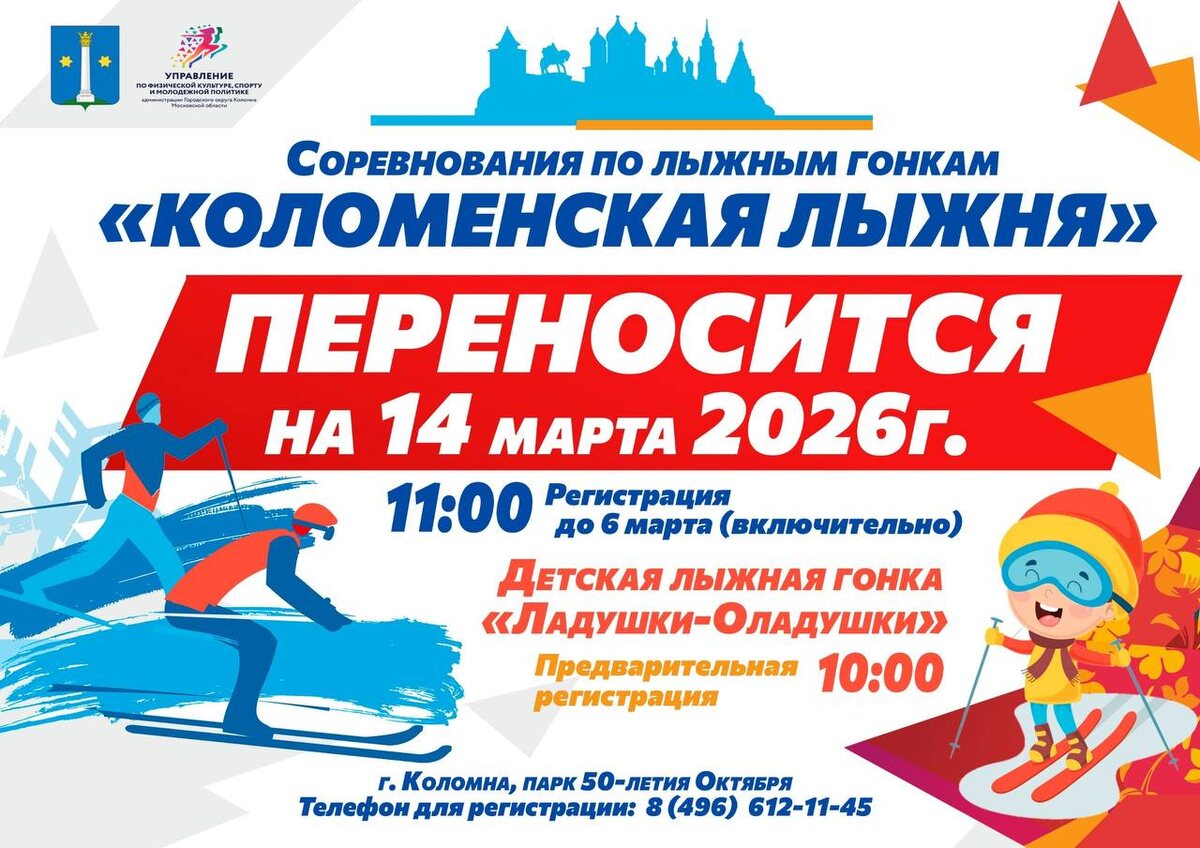 🎿 Традиционные зимние спортивные соревнования по лыжным гонкам «Коломенская лыжня – 2026» переносятся на 14 марта, в связи с погодными