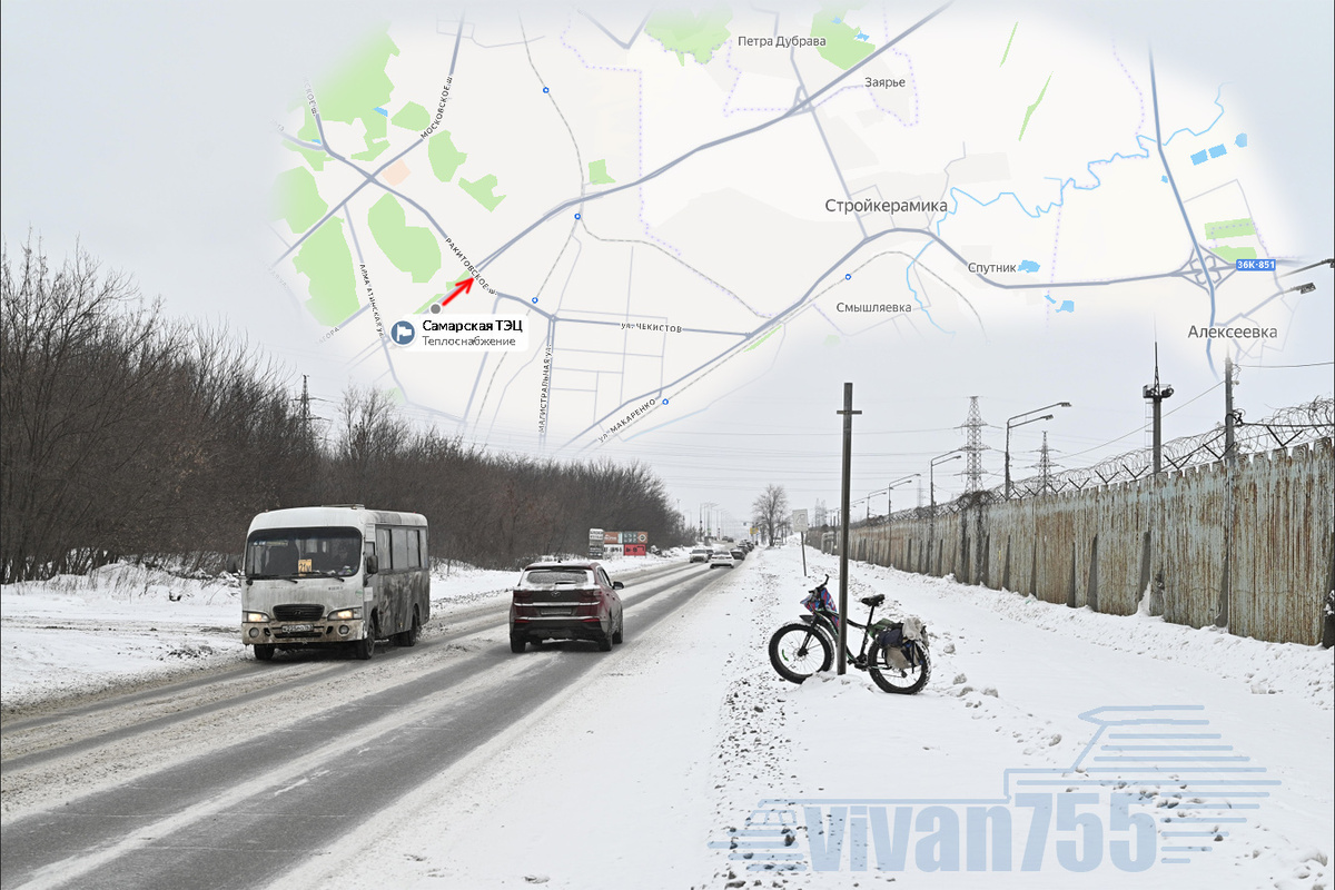 Самара здесь кончается, начинается Волжский район, что сразу видно по кончающемуся шумозащитному экрану:
