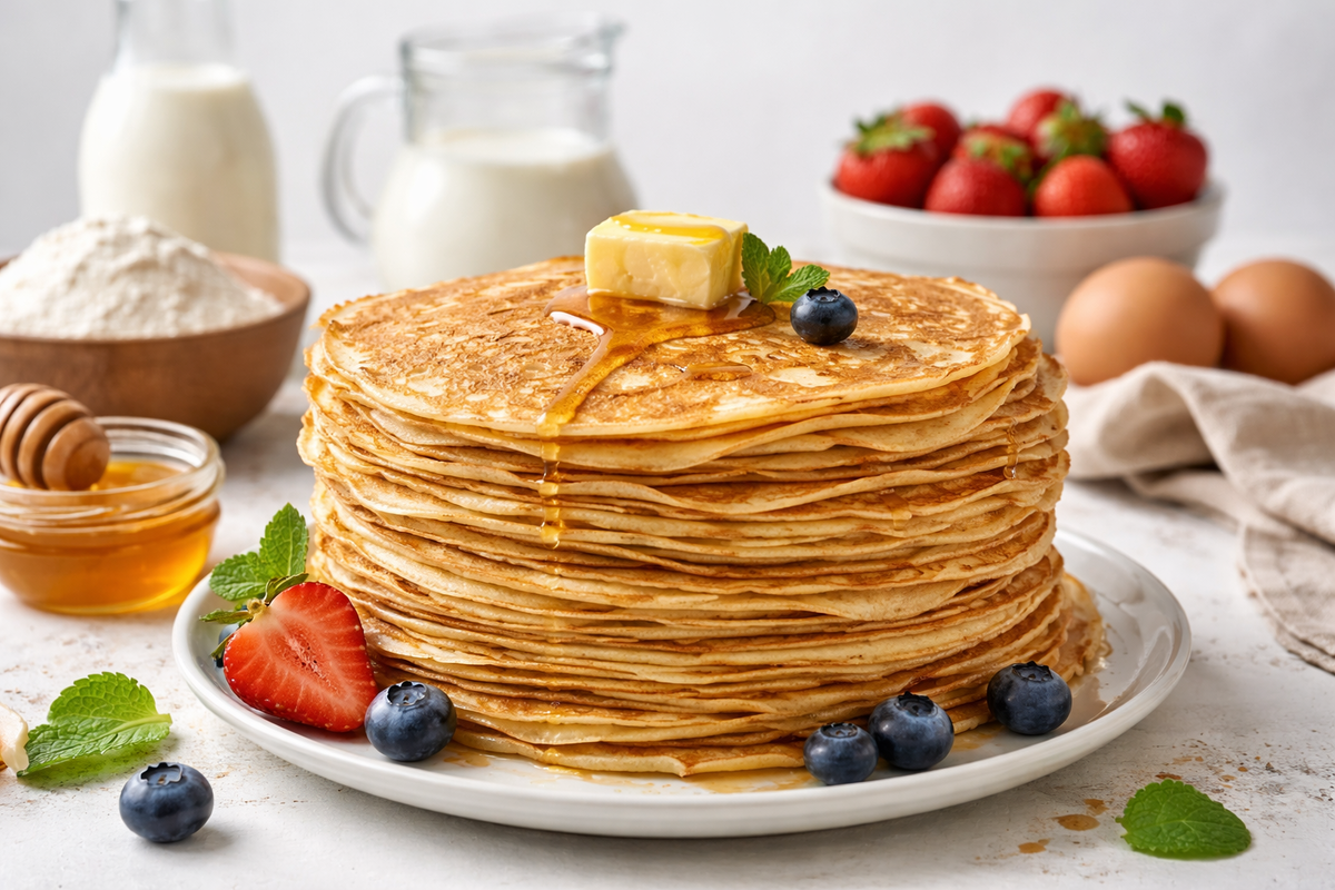 Ниже мой рабочий рецепт, который стабильно дает тонкий лист, мягкий край и красивые дырочки, даже если вы печете блины нечасто.