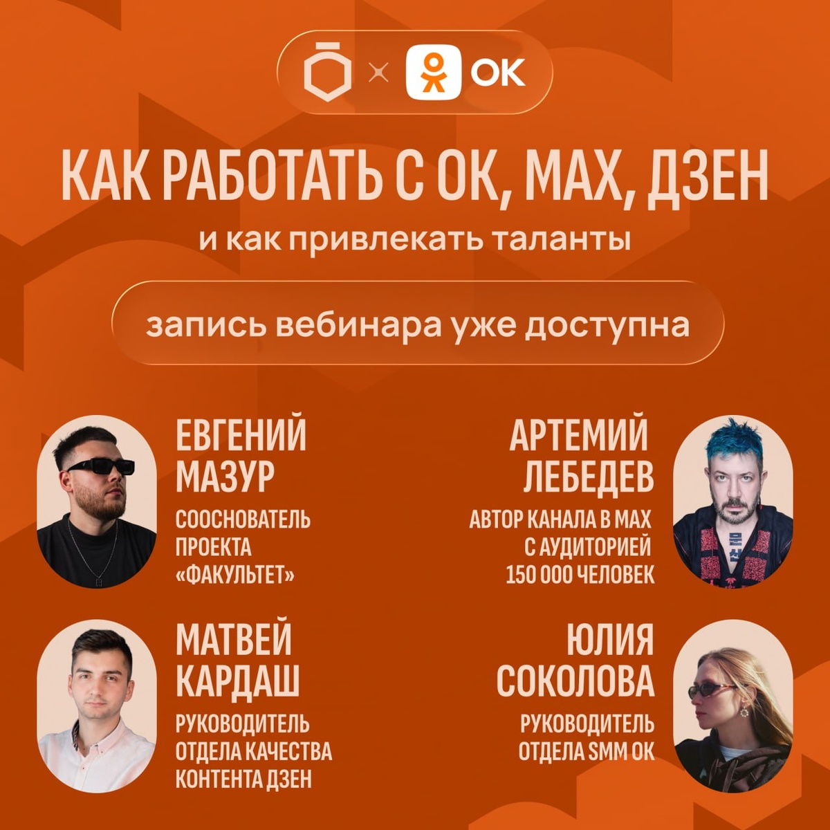 ! Спасибо всем, кто присоединился к эфиру, задавал вопросы и включался в обсуждение. Получился предметный разговор про контент, площадки и работу команды в спорте. Наш эфир собрал 29 366 просмотров — спасибо вам за интерес и вовлечённость 👏 Если не успели подключиться или хотите пересмотреть отдельные моменты — запись уже доступна: — в комьюнити «Факультета» — на нашей странице в ОК 🟠 Подписаться на Факультет