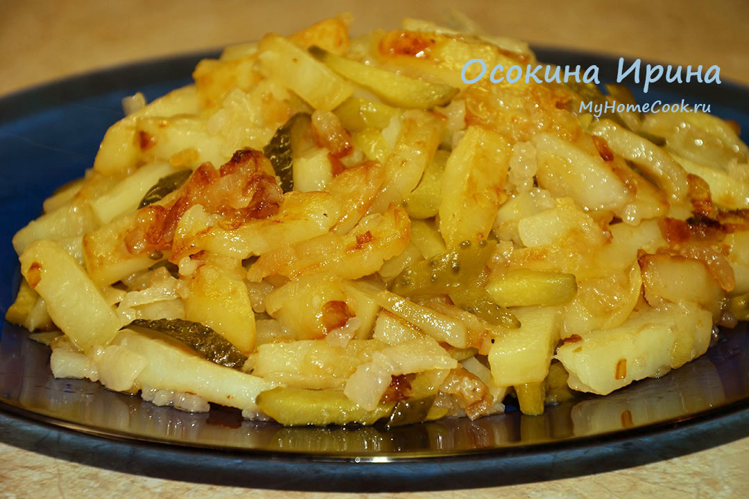 Жареная картошечка - это гастрономическое блаженство родом из детства! Моя бабуля готовила её незабываемо великолепно) Сегодня захотелось себя порадовать: в большой сковороде обжарила 100 г хорошего солёного свиного сала брусочком, добавила 2 луковицы четверть-кольцами, обжарила до мягкости лука, добавила 6 картофелин брусочком и жарила, изредка помешивая, почти до готовности картошки, добавила 3 маринованных огурчика тонким брусочком, обжарила всё до полной готовности картофеля и сразу подала. Просто, но до безумия вкусно) Приятного аппетита