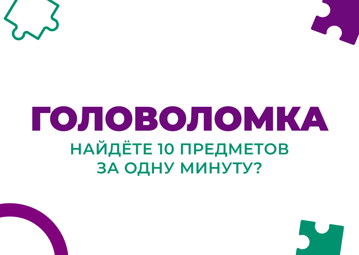 ☕ чашечку чая Засеките время и попробуйте уложиться в одну минуту. Такие упражнения кажутся простыми, но на самом деле требуют высокой зрительной концентрации и способности выделять нужный объект среди множества деталей. Это тренирует избирательное внимание — одну из ключевых когнитивных функций. Если вы нашли все десять предметов — великолепно.