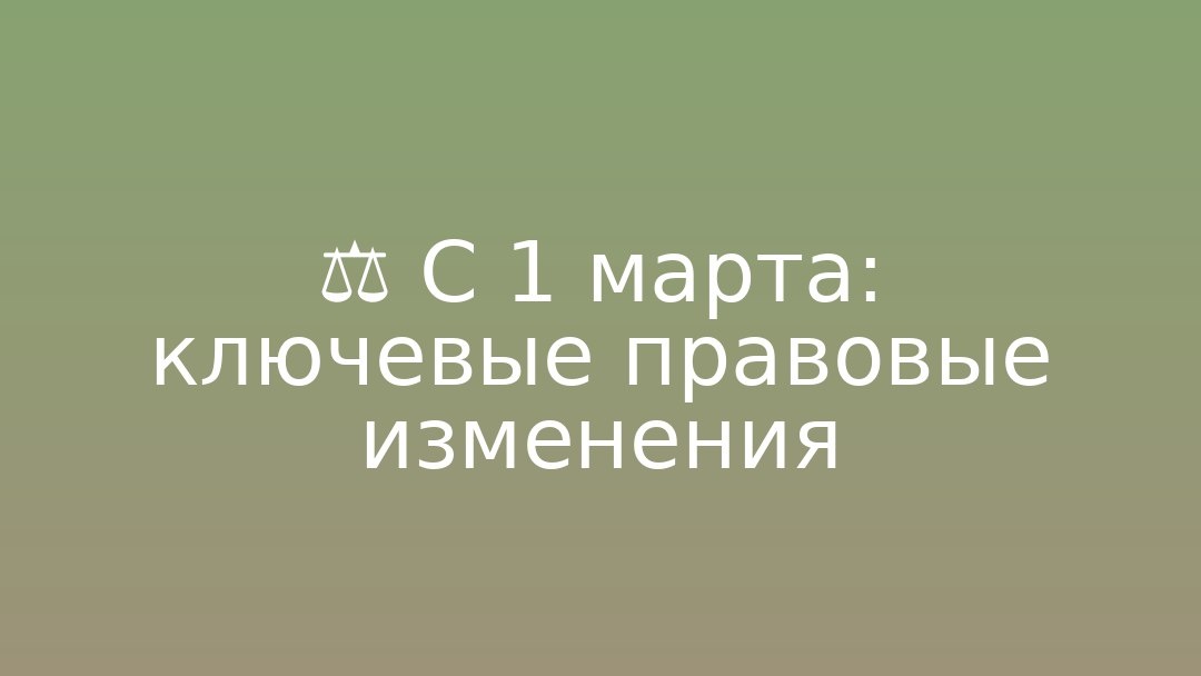 — Новые правила обучения в автошколах: дистанционная теория, больше часов вождения. — Разрешена более поздняя оплата квитанций за ЖКУ. — Обязанность бороться с борщевиком и другими ядовитыми растениями (штрафы). — Вывески только на русском языке. — Микрозайм — только после обязательной биометрической идентификации. — Такси — приоритет автомобилям отечественной сборки. (Вступление норм в силу: с 1 марта 2026 года.)