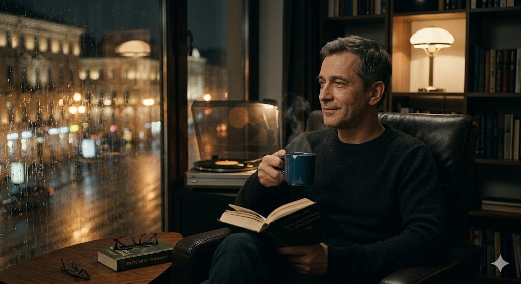 Вечером, вернувшись в свою пустую квартиру, я повесил плащ, аккуратно поставил ботинки в ряд. За окном зажигались огни моего любимого, шумного города. Я заварил чай, прошел в кабинет и включил настольную лампу. Взял с полки книгу, безошибочно найдя ее на привычном месте, и улыбнулся.