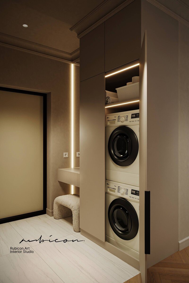 Не просто красиво — удобно жить. Здесь есть всё, чтобы сохранить порядок и не захламлять интерьер: — гардеробная при входе — полноценный хозблок для уборочного инвентаря и бытовых мелочей — функциональная кухня с нормальным рабочим пространством — достаточное хранение в каждом санузле — большая мастер-гардеробная в спальне Потому что правда в том, что даже самый эстетичный интерьер может «сломаться» в быту. Когда нет места под чемодан, сушилку, пылесос, запасы бытовой химии — дизайн перестаёт работать. Я всегда считаю одной из главных задач проекта — найти место каждой вещи. Тогда интерьер остаётся чистым, лёгким и не требует ежедневной борьбы за порядок. Именно это и есть комфорт. Наш проект #ДП_Событие #исправляемпланировку