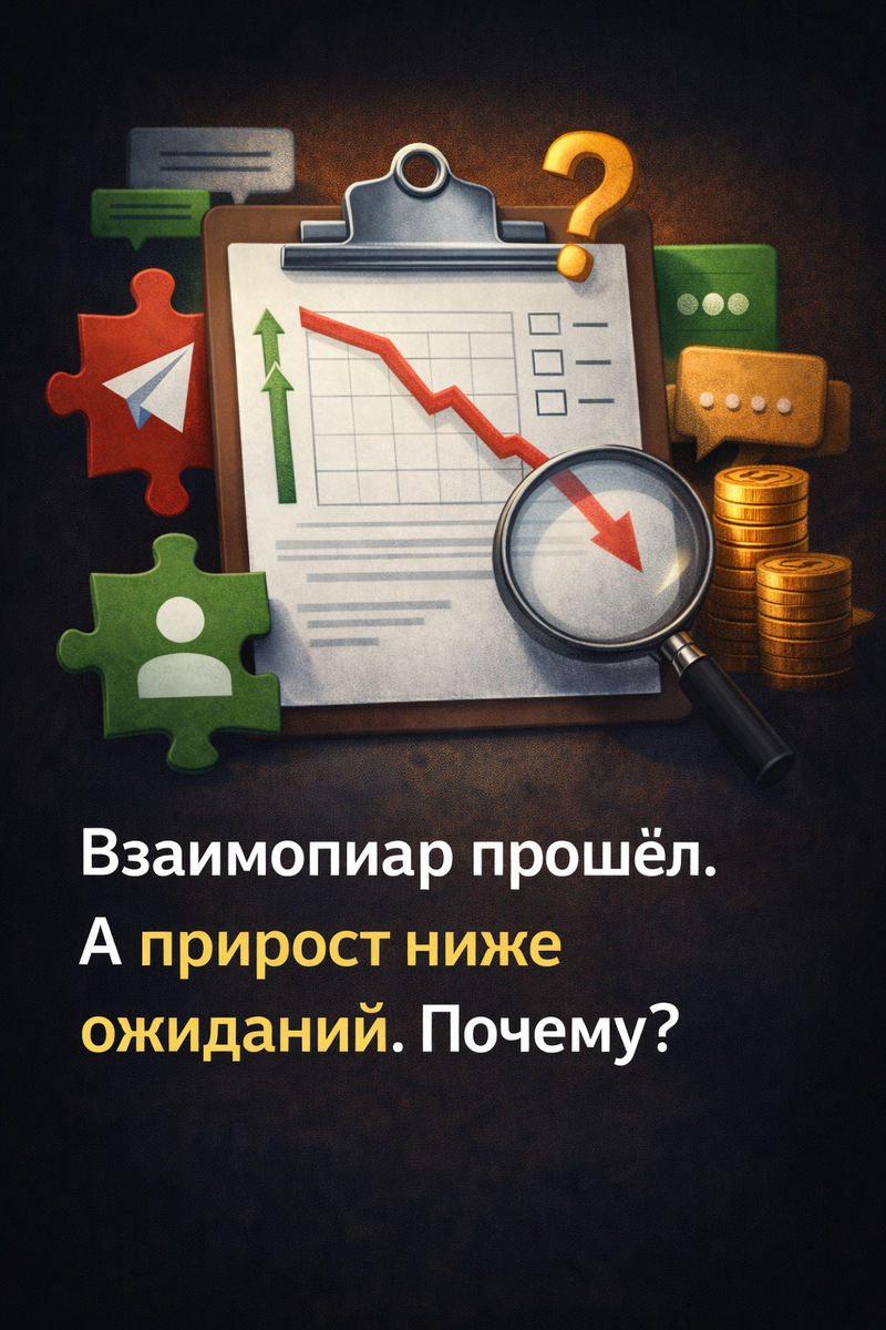 Иногда обмен проходит корректно: пост опубликован, условия соблюдены, охват у партнёра в пределах нормы, но итоговый прирост подписчиков оказывается ниже ожидаемого. Это не обязательно проблема партнёра или качества вашего канала.