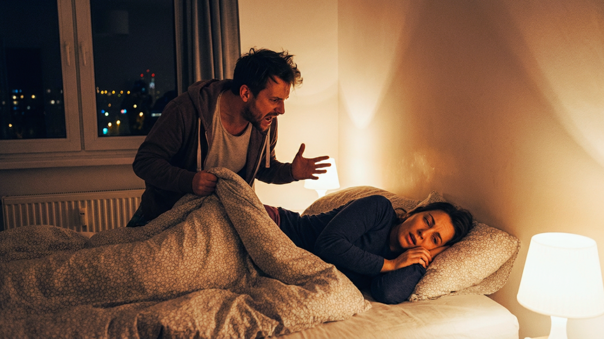 Светлана, только-только провалившаяся в тяжёлый, вязкий сон после изматывающего дня, с глухим стуком ударилась бедром о холодный ламинат. Резкая боль в боку мгновенно выбила остатки сна, но сознание всё ещё путалось, отказываясь воспринимать реальность. В глаза ударил яркий, неестественно белый свет люстры, которую Игорь включил на полную мощность, не заботясь о том, что это режет зрение.