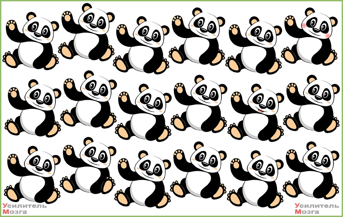 На каждой картинке есть по три панды, которые отличаются от остальных 🙈 Сможете найти их всех?👨🎓