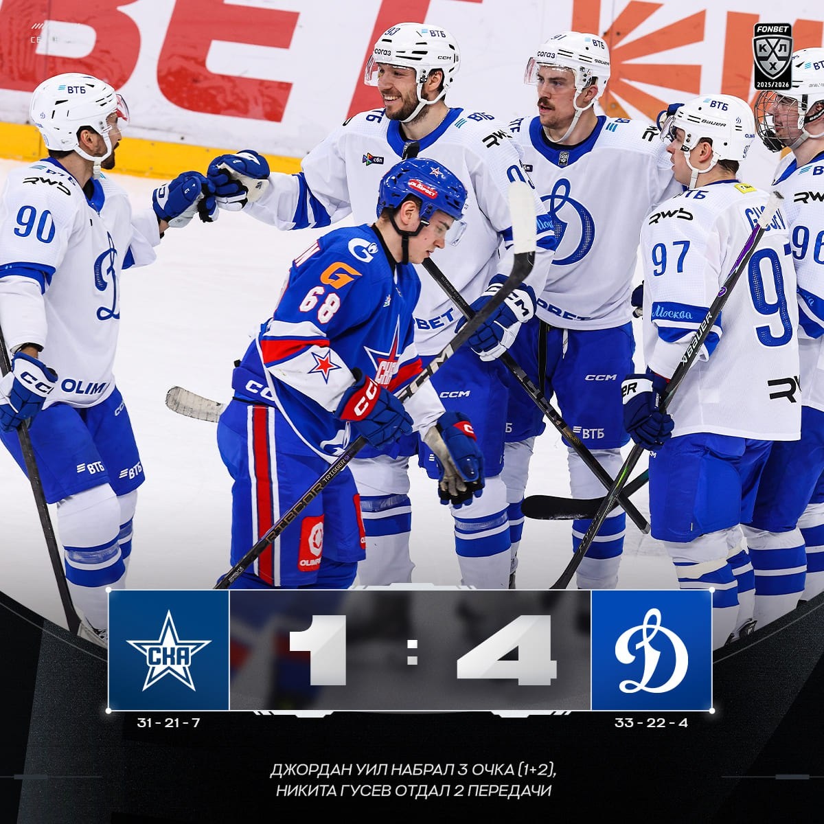 π΅ Π’ΡΠΈ ΠΎΡΠΊΠ° ΠΠΆΠΎΡΠ΄Π°Π½Π° Π£ΠΈΠ»Π° ΠΏΡΠΈΠ½Π΅ΡΠ»ΠΈ ΠΌΠΎΡΠΊΠΎΠ²ΡΠΊΠΎΠΌΡ Β«ΠΠΈΠ½Π°ΠΌΠΎΒ» ΠΏΡΡΡΡ ΠΏΠΎΠ±Π΅Π΄Ρ Π² ΡΠ΅ΡΡΠΈ ΠΈΠ³ΡΠ°Ρ !