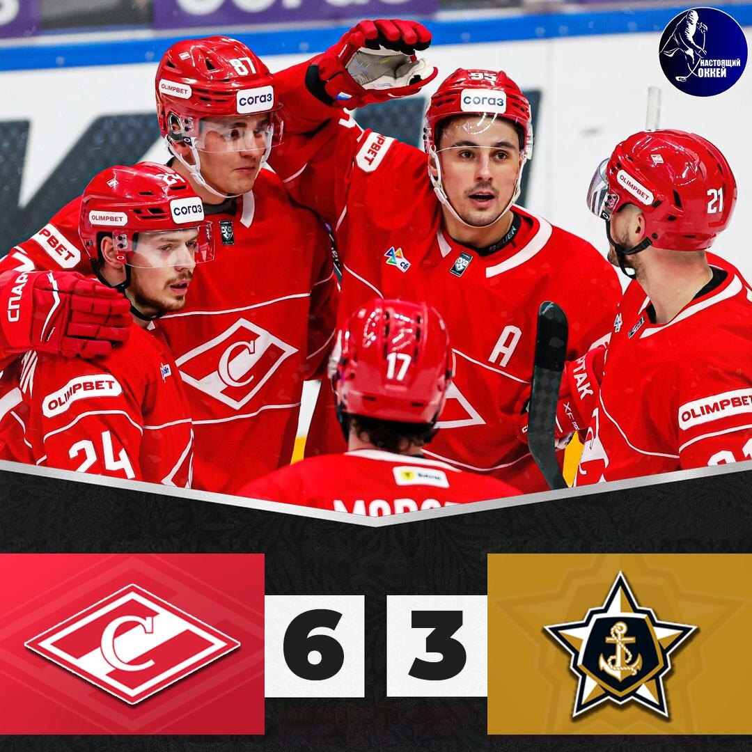 » 🔴 Спартак – ⚓️ Адмирал – 6:3 (2:0, 1:2, 3:1) 🔴 1:0 Филин (Соловьёв, Кровяков) – 10:31 (5x4) 🔴 2:0 Мальцев (Гутик, Порядин) – 14:03 (5x5) ⚓️ 2:1 Шулак (Тимашов, Старков) – 30:42 (5x4) 🔴 3:1 Кин – 34:30 (5x5) ⚓️ 3:2 Булавчук (Олсон, Шулак) – 36:32 (5x4) ⚓️ 3:3 Завгородний (Шулак, Олсон) – 47:05 (5x5) 🔴 4:3 Гутик (Вишневский, Мальцев) – 52:41 (5x4) 🔴 5:3 Филин (Холодилин, Рябов) – 54:14 (5x5) 🔴 6:3 Филин (Мальцев, Орлов) – 59:24 (en) 🥅 Вратари: Загидуллин – Цыба (Кульбаков) 📱 Подпишись на НАСТОЯЩИЙ ХОККЕЙ
