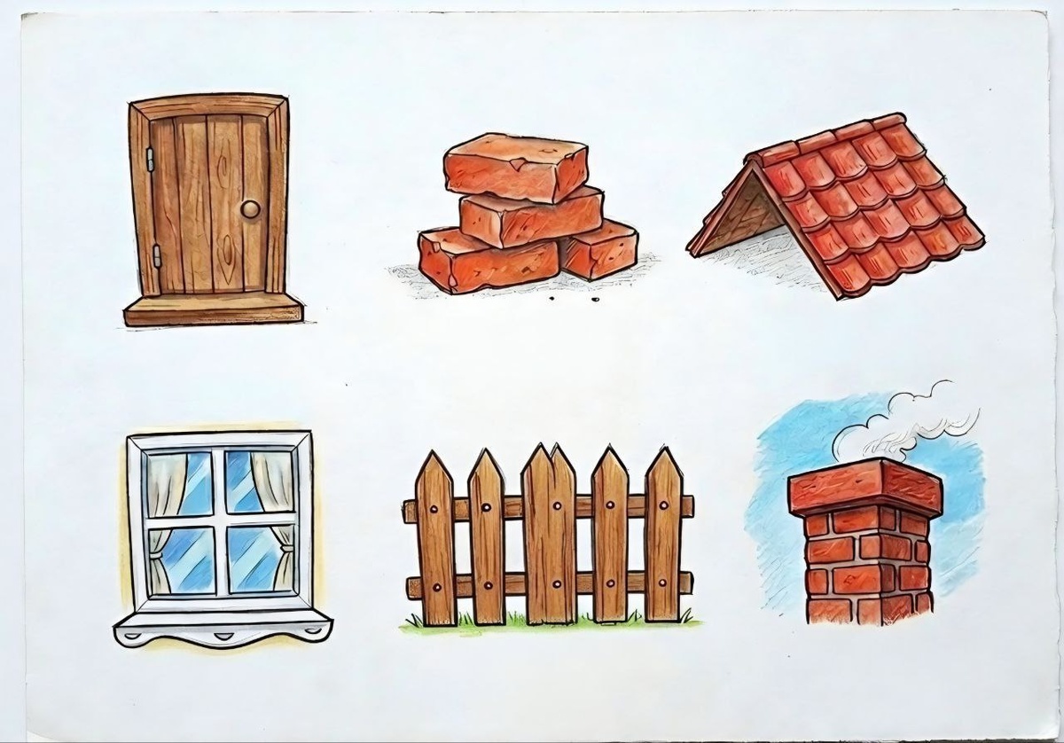 ДОМИК Ассоциативная задача на выявление целого по его частям. Очень хорошее упражнение 👍 Рекомендации родителям: 1. Покажите ребёнку картинку и спросите, что изображено на ней. Пусть перечислит все предметы. 2. Спросите, что можно собрать из этих деталей. 3. Покажите мультфильм. Предназначено для детей 2-3 лет. P.S. Родители, делитесь, как ваши малыши справляются с заданиями в комментариях. Если что-то не получается или, наоборот, скучно, будем придумывать задачи специально для вас.‼️ Изображение сгенерировано ИИ Gemini, анимация - ИИ GROK #малышматика_прочее #раннееразвитие