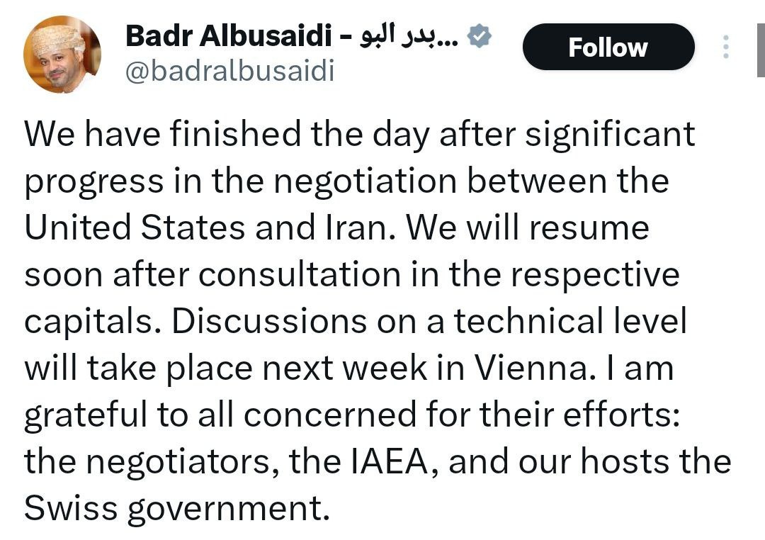 'Significant progress' in latest round of Iran-US talks — Oman’s FM