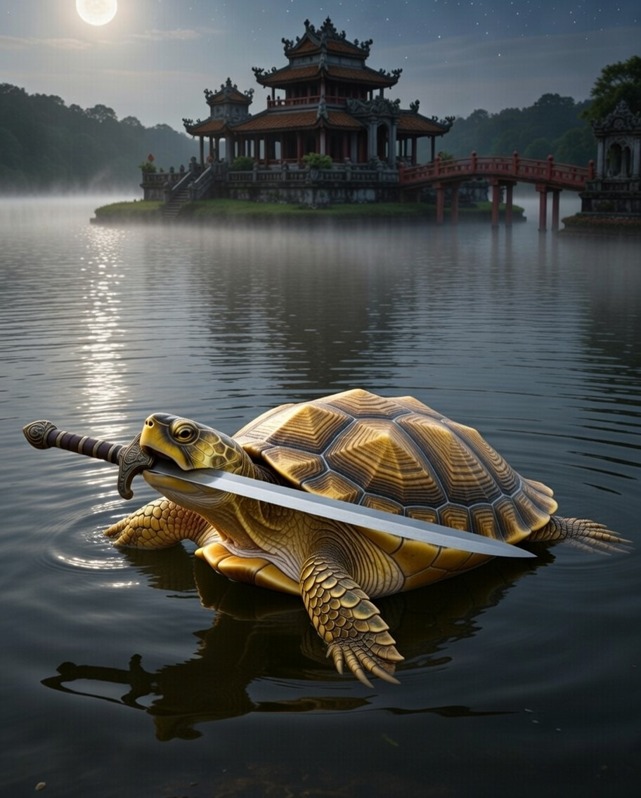 — У нас есть озеро Хо Гыом. Оно в центре Ханоя. И там живёт черепаха. Не простая — золотая. И если верить легенде, она до сих пор хранит меч, который может изменить судьбу страны.