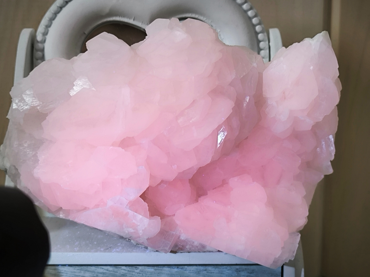 Розовый кальцит, 1579 г., примерно 18х11см, светится в УФ розовым