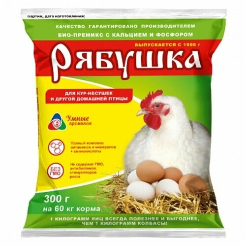 Рябушка - Натуральный состав, 12 витаминов и 7 микроэлементов, биологически безопасен Повышение яйценоскости, профилактика рахита и расклева, улучшение качества яиц. 10 г на 1 кг корма