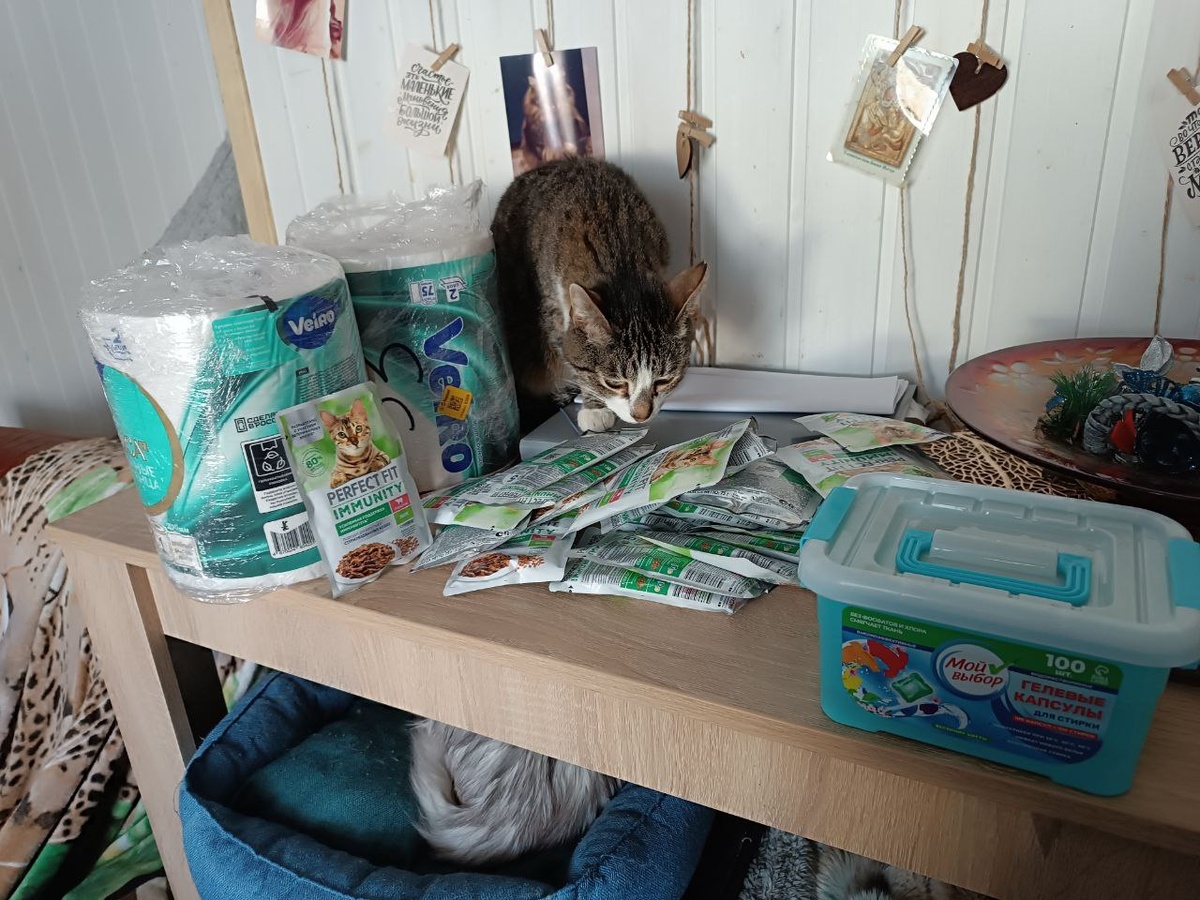 А ещё подарки от нашей феи Юлечки.Гигансткие рулоны, корм, капсулы и гигантская бутылка доместоса.Все супер нужное!!!! Фенечки они такие, очень заботливые и волшебные❤️❤️❤️❤️❤️От всей души благодарим и обнимаем нежно.