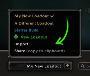 Наборы талантов можно импортировать и экспортировать. Это делается с помощью сохраненного кода. Вы можете получить доступ к этим функциям в выпадающем меню наборов талантов.