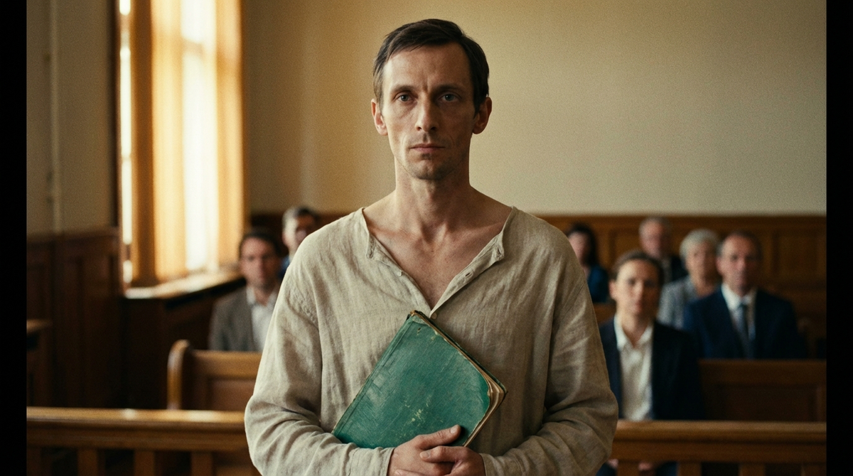 Егор Ларин вошёл один, без адвоката. Я увидела его впервые в жизни. Немногим за тридцать, худой – рубашка свободно висела на ключицах, брюки чуть коротковаты, ботинки начищены, но старые. Он шёл осторожно, аккуратно обходя стулья, как человек, привыкший не задевать чужие вещи. Сел напротив нас, положил на колени матерчатую сумку.