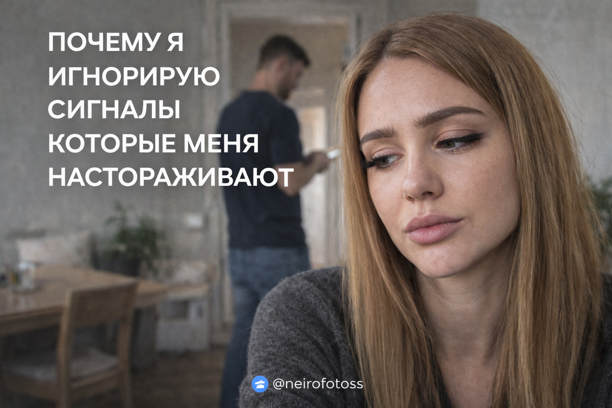 Настораживающие сигналы часто игнорируются из страха. Страха остаться одной, признать ошибку, начать сначала. Самообман в том, что ты называешь это терпением и верой, хотя внутри это попытка удержать форму любой ценой. Внутренний признак реальности простой: после уступок тебе становится теплее рядом с ним или появляется ощущение, что ты снова себя уменьшила. Если второе повторяется, игнорирование уже стало стратегией выживания.