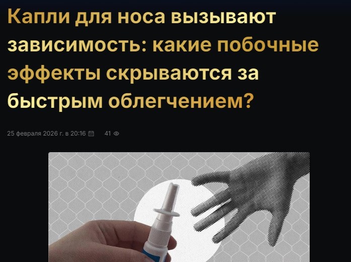 По словам медиков, сосудосуживающие капли быстро снимают заложенность, но при частом использовании вызывают серьезное привыкание — без них нос снова закладывает. Среди побочек — повышение давления, тахикардия, перебои в работе сердца, головная боль и даже ухудшение зрения. Использовать такие капли можно НЕ ДОЛЬШЕ 10 дней подряд. Вы знаете, кого предупредить. CtrlAltDelights- подписаться