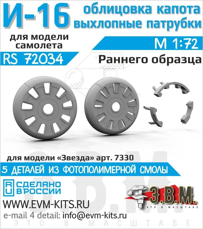 Э.В.М. выпустили облицовку капота раннего образца (без воздухозаборника) И-16 тип-5 в 1/72 масштабе.