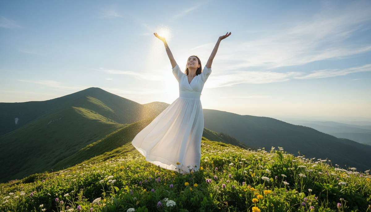 Призываем Рэйки, и высоко над головой в космическом канале видим свет потока энергии Рэйки. Свет опускается нам в макушку, сверху-вниз наполняет все наше существо и через ноги устремляется к центру Земли. Мы – существа из света. Просто наслаждаемся энергией Рэйки.
