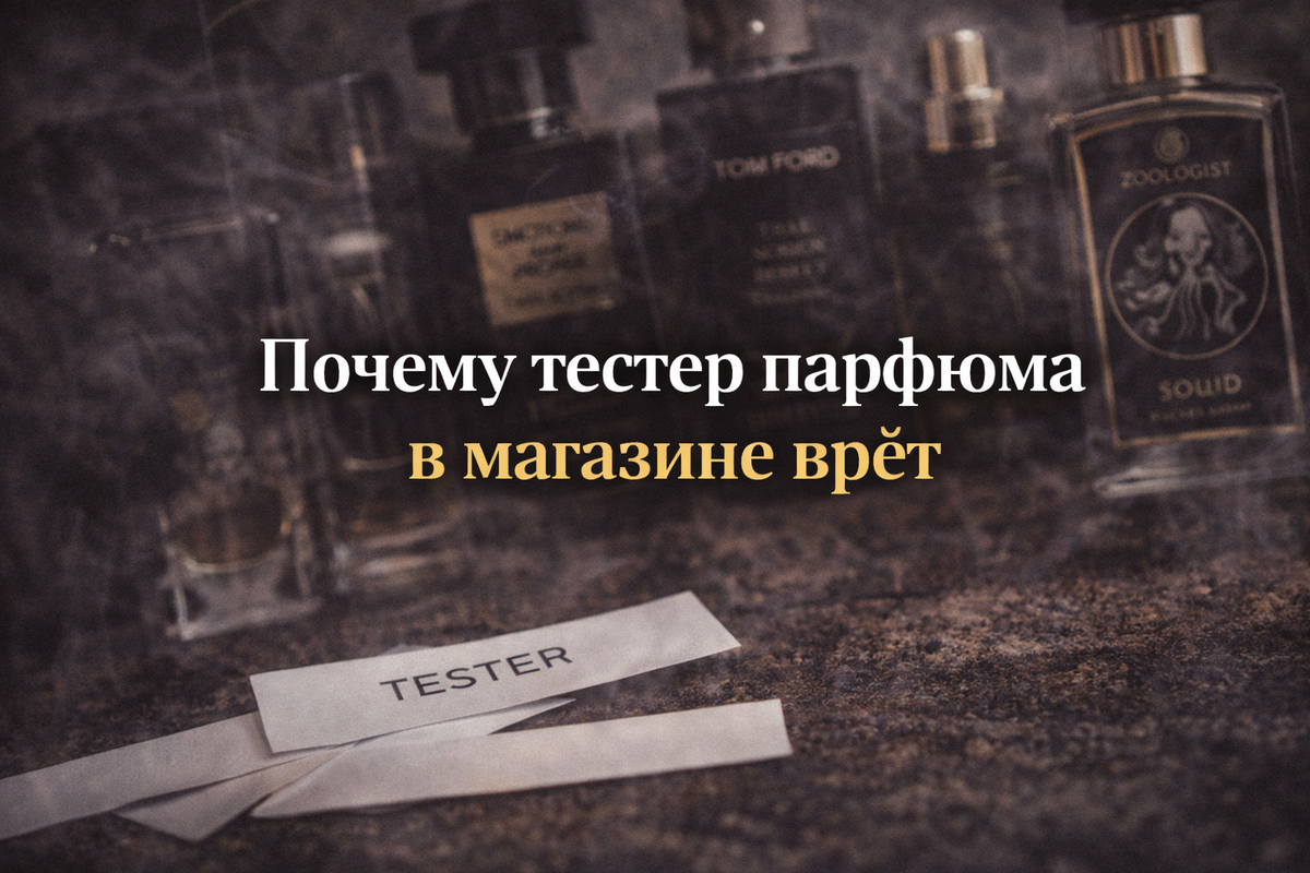 Я долго верил, что если аромат понравился в магазине, значит он мой. Пшикнул тестер на блоттер. Понравилось. Нанёс на запястье. Вроде хорошо. Купил флакон. Приехал домой. И через день понял, что это вообще не тот запах. Как будто меня обманули. На самом деле никто не врёт специально. Но тестер парфюма в магазине почти всегда показывает аромат не таким, каким он будет в реальной жизни. И особенно это касается нишевой парфюмерии. Первая причина - перегруженное пространство. В любом магазине духов в воздухе уже висит десяток разных запахов. Люди вокруг тестируют ароматы, консультанты что-то распыляют, витрины пахнут сами по себе. Твой нос работает в хаосе. Он устает и искажает восприятие. В таких условиях даже хороший нишевый аромат может показаться резким или плоским. А посредственные духи наоборот покажутся приятными и безопасными. Вторая причина - блоттер врёт. Бумага не кожа. На блоттере ты чувствуешь в основном верхние ноты парфюма. Цитрусы, специи, первые аккорды. Они яркие, эффект
