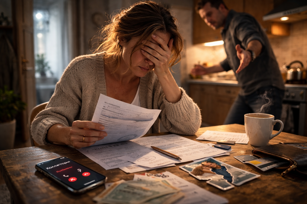 В дверь позвонили в субботу утром. Я подумала, что это соседка - мы иногда меняемся ключами, если кому-то нужно полить цветы. На пороге стояли двое мужчин. Спокойные, аккуратно одетые. Один держал папку. Я кивнула. Сначала я решила, что это ошибка. Даже усмехнулась. Муж вышел в коридор и встал позади меня. Очень тихо. Слишком тихо. И в этот момент я впервые почувствовала холод не в руках - внутри. Я работаю бухгалтером. Я не беру кредиты. Никогда. Ни на телефон, ни на отпуск, ни "до зарплаты". Мы жили без излишеств, но и без долгов. По крайней мере, я так думала. Когда мужчины ушли, я повернулась к мужу. Он потер лицо ладонью. Он посмотрел на меня так, будто я задала странный вопрос. В этих трех словах не было извинения. Только логика. Будничная. Холодная. Оказалось, что он взял не один кредит. Три. В разных микрофинансовых организациях. Проценты - почти 40% годовых. Я узнала об этом за один вечер больше, чем за двадцать лет брака. Деньги ушли в "дело". Какое - он путался в объяснениях