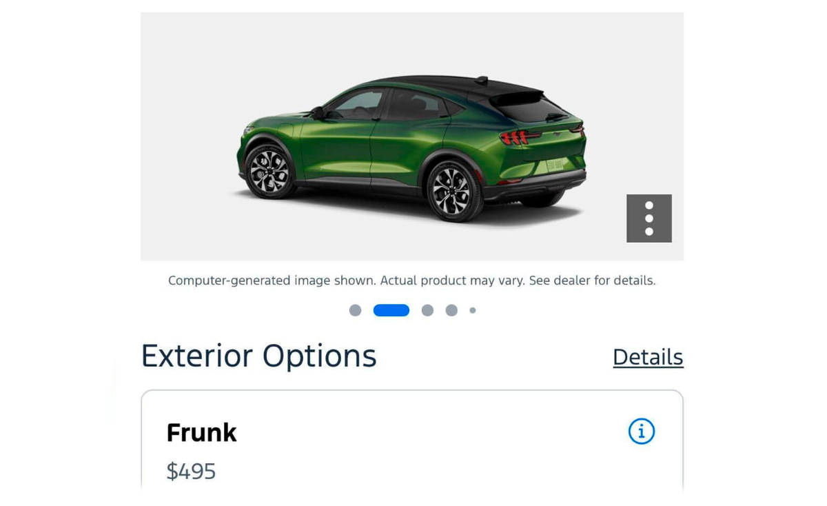 Ford добавил необычную опцию для электрокроссовера Mustang Mach-E: доступ к переднему багажнику теперь стоит $495 (≈38 000 ₽). Сам отсек конструктивно предусмотрен и физически установлен в машине с завода, но использовать его для перевозки мелких грузов можно только после оплаты. Опция оформлена через конфигуратор как дополнительная функция.