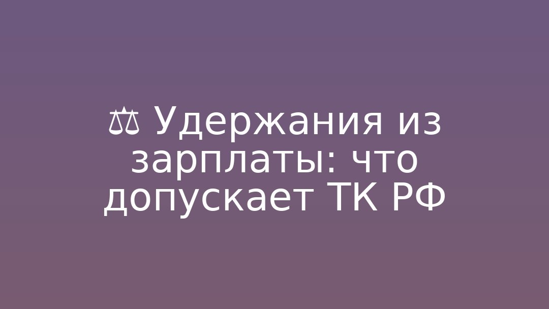 137 ТК РФ допускает удержания: НДФЛ и суммы по исполнительным документам; в пользу работодателя — неотработанный аванс, неиспользованный и не возвращенный аванс на командировку, излишне выплаченные суммы из‑за счетной ошибки, удержания за неотработанные дни отпуска при увольнении. Взыскание материального ущерба — в пределах среднего месячного заработка по распоряжению работодателя в течение 1 месяца со дня установления ущерба; свыше — по суду или по соглашению. Лимиты удержаний установлены ст. 138 ТК РФ.