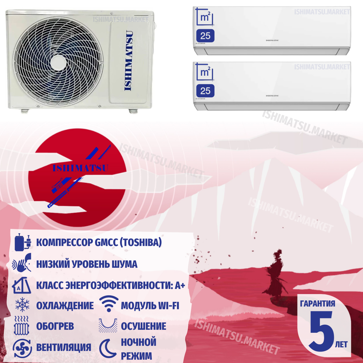 Для получения более подробной информации и заказа комплекта, вы можете посетить страницу продукта: Мульти сплит-система на 2 комнаты Ishimatsu AMS-09 (2шт) - AMSN-14/2.