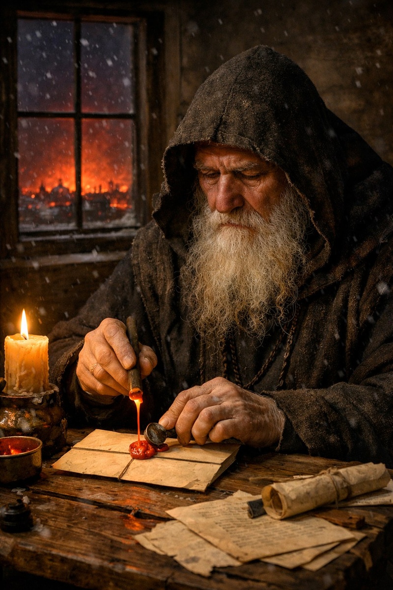 Он сидел в келье. На столе лежали бумаги. Он писал много в последние месяцы. О судьбе династии. О конце царей. О России, которая переживет всех.