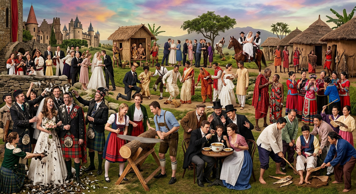Свадьба — это белое платье, торт, кольца и «горько», верно? Не совсем. В истории были свадьбы, где невесту прятали в дыму, жениха били палками, а гости… проверяли постель. И всё это считалось нормой. Иногда — даже обязательной частью обряда. Поехали в прошлое. Там брак был делом не только романтики, но и магии, страха и очень практичных расчётов. В разных регионах Европы существовал обычай «похищения» невесты. Иногда — как символический ритуал. Жених с друзьями «крал» девушку из родительского дома. Семья делала вид, что сопротивляется. Но в некоторых местах это было вполне реально. Особенно там, где согласие родителей было проблемой. Похищение становилось способом поставить всех перед фактом: раз девушка уже у жениха — брак почти неизбежен. Романтика? Сомнительная. Зато эффективно. Во Франции и Англии существовала традиция «шаривари» — громкий, хаотичный шум под окнами новобрачных. Гости гремели кастрюлями, кричали, играли на всём, что издаёт звук. Смысл — отпугнуть злых духов. А иногд
