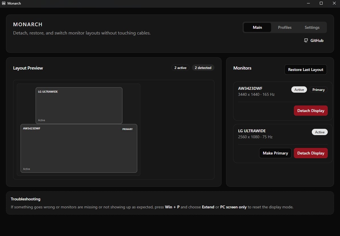 Реддитор выкатил Monarch — бесплатную утилиту для Windows, которая убирает боль при работе с тремя и более мониторами
