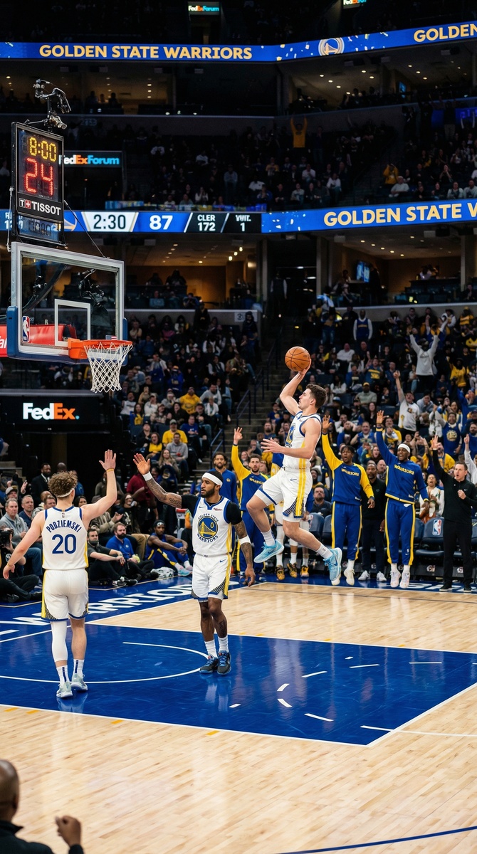 Уорриорз вышли без Стефена Карри, Дрэймонда Грина, Джимми Батлера III, Д’Антони Мелтона и Кристапса Порзингиса — сильно укороченный ростер, но команда выдала сбалансированную атаку.