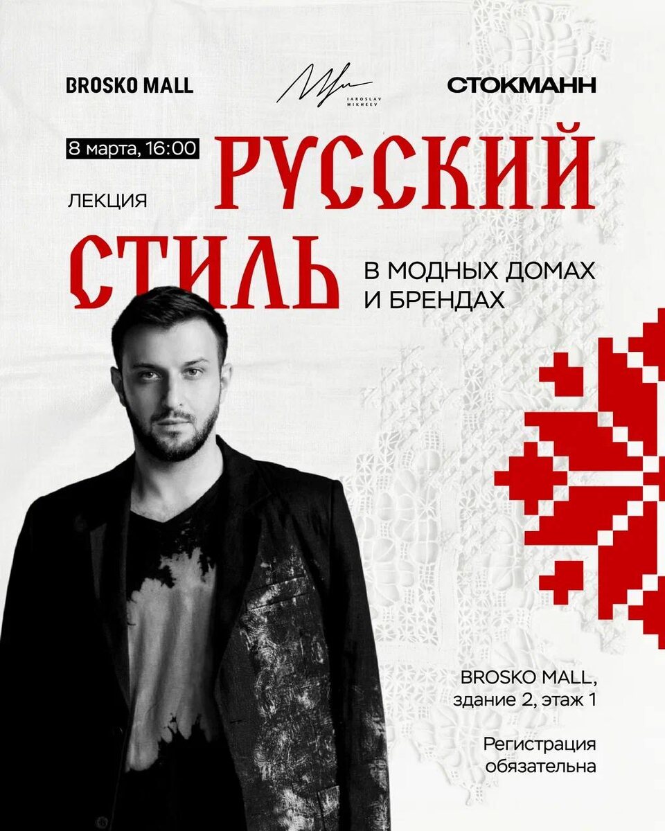 » ✔ #8_марта — встреча с исследователем моды Ярославом Михеевым ✔ Разбор коллекций кутюрье и брендов, вдохновлённых славянской эстетикой ✔ Влияние Сергея Дягилева и «Русских сезонов» на мировую моду ✔ Как современные бренды интерпретируют стиль «A la Russe» ✔ Розыгрыш подарков и специальные предложения от партнёра СТОКМАНН 📅 Когда: #8_марта, 16:00 ⛳ Где: атриум второго здания (1–2 этаж) 💳 Стоимость: участие бесплатное, обязательна регистрация Бронь 👉 Афиша Хабаровска. Куда сходить, экскурсии