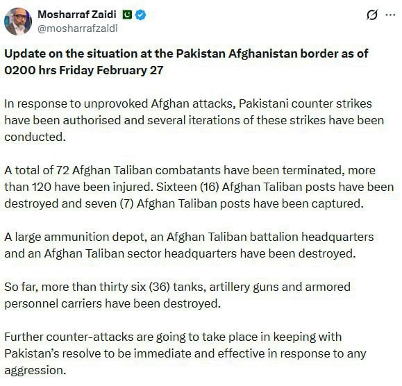 Власти Пакистана сообщили о гибели 72 афганских военных в боях на границе