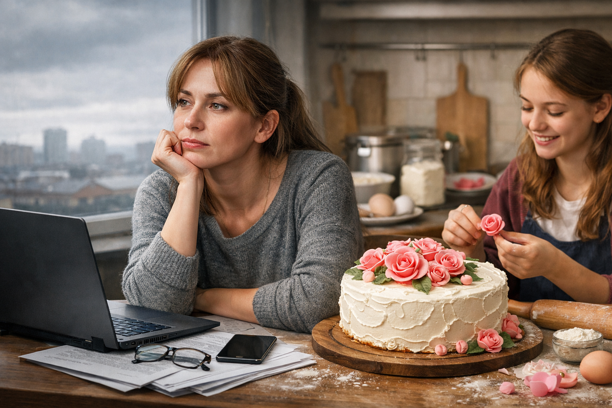 Вчерашняя заметка в телефоне — «Торты. Поговорить с Мариной» — казалась сейчас глупой и детской. Какие торты? Она бухгалтер с пятнадцатилетним стажем. Она умеет считать налоги, составлять балансы, проходить проверки. А печь… ну, пекла когда-то в институте. И бабушка учила. Но это же не профессия.