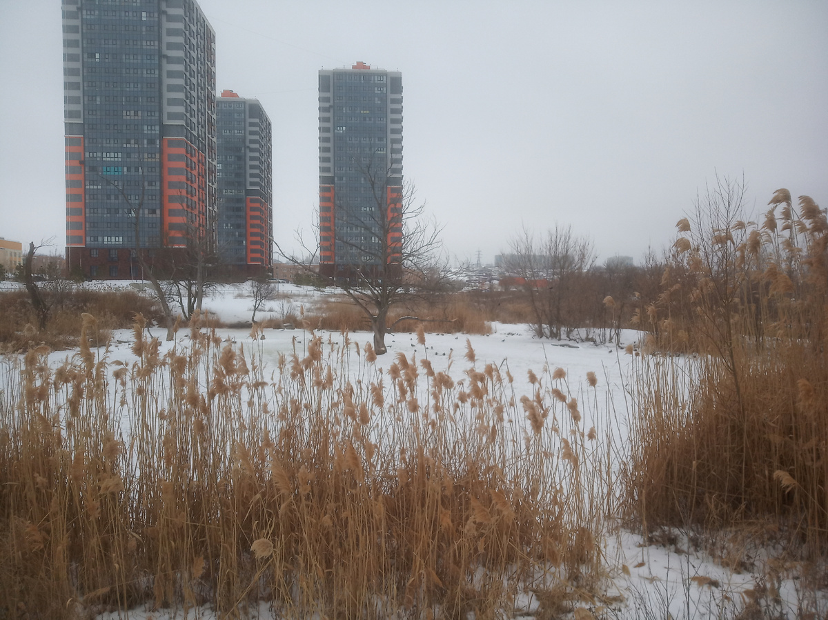 Всем привет. Уже показывала строительство дороги по улице Родниковой в Советском районе Волгограда - между микрорайоном "Родниковая долина" и Второй продольной (проспектом Университетским). В начале этого строительства вырубили высокие деревья возле прудов. Когда-то там был небольшой парк, осенью 2019-го с коляской часто там гуляли. 25 февраля 2026. Для долгой зимней прогулки экипировалась как следует. Проходя мимо пруда, на льду увидели уток. Видимо, прилетели во время потепления, ведь уже доходило до +8 градусов. А потом снова ударили морозы, выпал снег, и пруд замёрз. Бедные утки! Бродили по снегу под голыми деревьями, даже жаль их стало. С осени прошлого года не была здесь, а между тем дорога, строительство которой продолжалось несколько лет, уже функционирует, как оказалось. Она довольно широкая, есть движение. Появились дорожные знаки и светофоры. Поставили остановки общественного транспорта, даже ходит новый автобус - № 41а "Химина - Ж/д вокзал". Вид на частный сектор (или дачны
