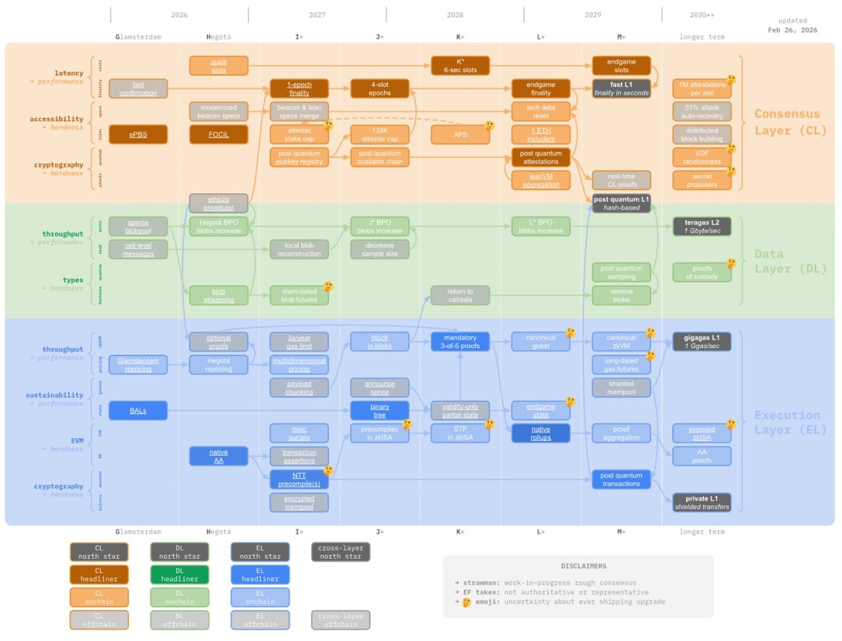 Ethereum Foundation опубликовала дорожную карту «Strawmap» для ETH