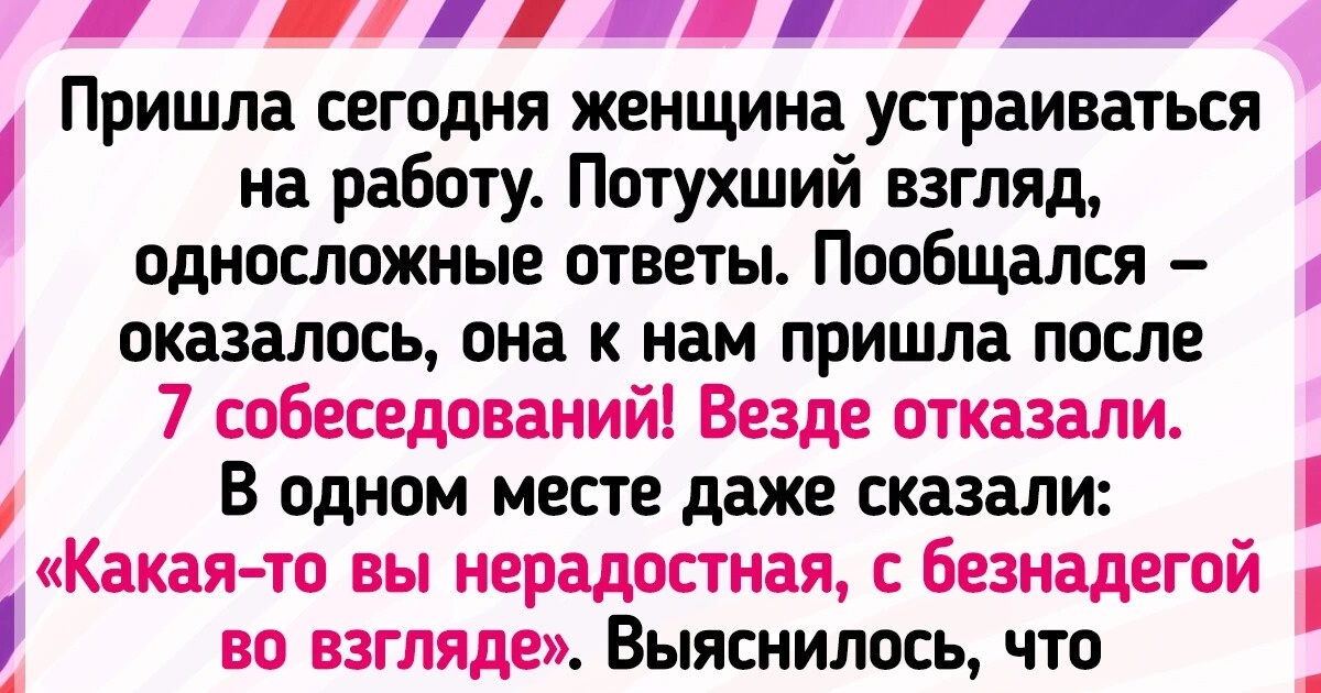 Очень часто для того, чтобы сделать кого-то счастливее или даже спасти из неприятной ситуации, вовсе не обязательно быть миллиардером или супергероем. Достаточно просто обладать большим сердцем и не быть равнодушным. Истории героев нашей статьи — лучшее тому подтверждение. Пришла сегодня женщина устраиваться на работу. Потухший взгляд, односложные ответы. Пообщался — оказалось, она к нам пришла после 7 собеседований! Везде отказали. В одном месте даже сказали: «Какая-то вы нерадостная, с безнадегой во взгляде». Выяснилось, что гражданский муж долго сидел у нее на шее и ушел, когда месяц назад она осталась без работы. Проверил ее по базам, все чисто. Короче, завтра выходит у нас на стажировку. © 1881ru / Pikabu Когда мне грустно, я захожу на сайт судебных приставов, вбиваю рандомно имя и фамилию человека и оплачиваю его мелкие долги. Не знаю, зачем я это делаю, но мне кажется, что я чуть-чуть помогаю людям. Помню, в детстве с родителями пошли в магазин с одеждой, а там, как назло, игруш