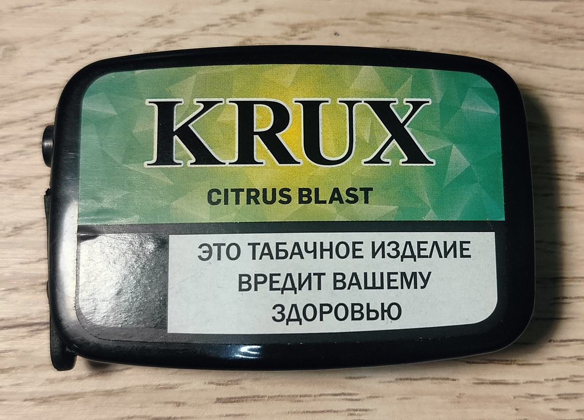 Табак прямиком из индии. Бренд Krux от компании DHOLAKIA. Нюхательный табак Krux Citrus Blast — это интересный продукт для любителей табачных изделий, который выделяется своей яркой и свежей цитрусовой ноткой. В этом обзоре мы рассмотрим основные характеристики и впечатления от использования этого табака. Скажу честно, но я ни разу не нюхал табак с цитрусовыми добавками! Очень необычно. Krux Citrus Blast поставляется в стильной и компактной упаковке, что делает его удобным. Внутри упаковки табак выглядит хорошо увлажненным и однородным, с заметными нотками цитрусовых ароматизаторов. Табак не просыпается. Состав нам не известен))) Ну чтож открываем. У Krux Citrus Blast является его яркий цитрусовый аромат. Даже очень яркий! Индусы явно любят перебарщивать с ароматизаторами. После открытия упаковки ощущается свежий запах лимонов и апельсинов, который создает ощущение легкости и бодрости. При нюхании табак раскрывается сладковатыми и кисленькими нотами, что делает его привлекательным дл