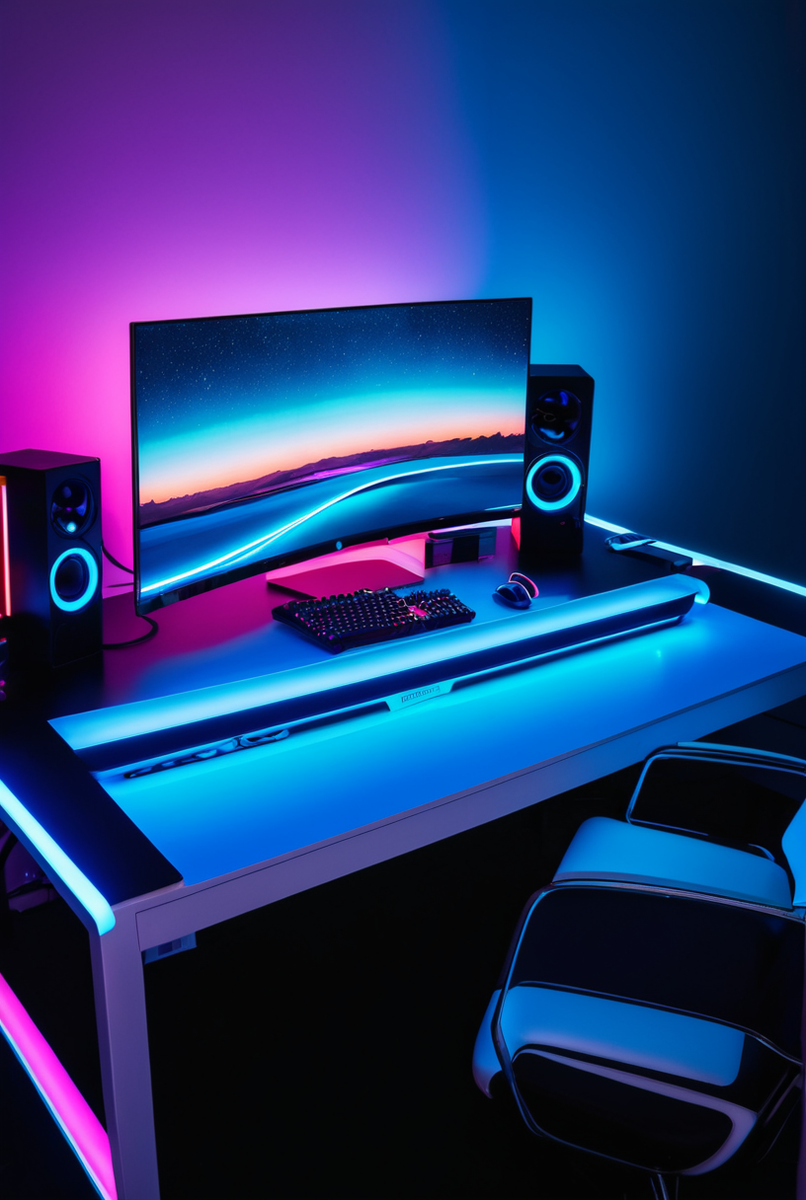 - Игровая комната: Яркая и динамичная RGB подсветка стола, полок и монитора создаст неповторимую геймерскую атмосферу.