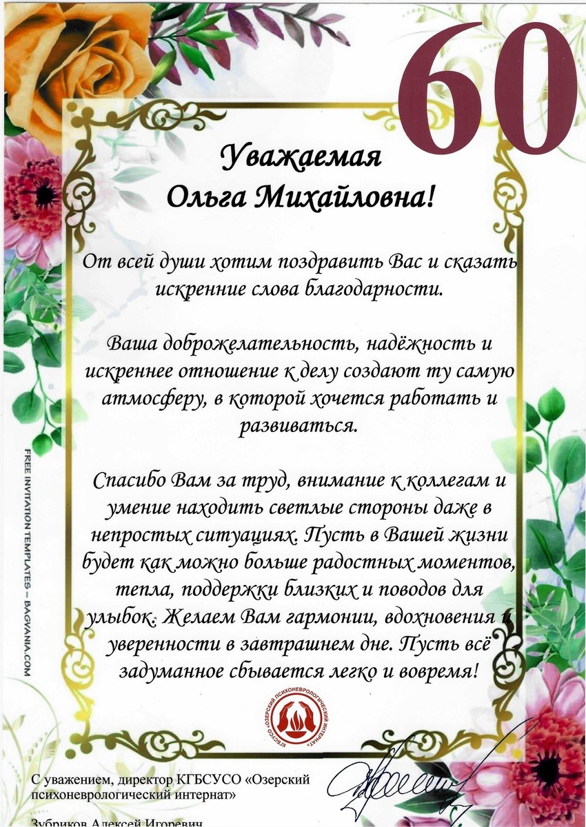 ! 👩💼Дорогие коллеги и друзья, от всей души поздравляем Ольгу Михайловну с этим замечательным юбилеем! Мы высоко ценим её профессионализм, терпение и умение находить подход к каждому подопечному. Благодаря Ольге Михайловне наши жители не только осваивают новые навыки, но и чувствуют себя нужными и значимыми. 🏡За годы работы Ольга Михайловна внесла огромный вклад в жизнь нашего интерната. Она научила многих наших жителей трудиться, быть целеустремлёнными и не бояться трудностей. Её терпение и мудрость помогают создать на подсобном хозяйстве атмосферу взаимопонимания и поддержки. 🙏Мы гордимся тем, что имеем возможность работать вместе с такими замечательными людьми, как Ольга Михайловна. Спасибо вам за ваш труд, преданность делу и неиссякаемый оптимизм! 💐С юбилеем, Ольга Михайловна! Мы вас любим и ценим! #ОзерскийДСО #Юбилей