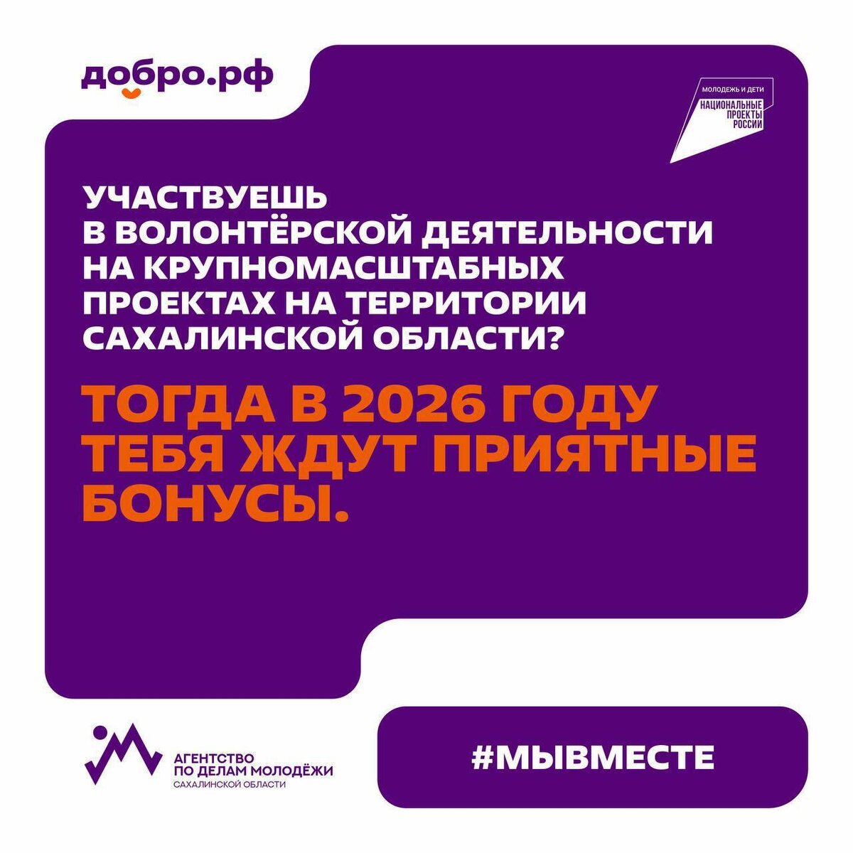 В 2026 году для всех, кто участвует в крупных проектах на территории региона, действуют особые привилегии. Загляни в карточки и узнай больше о специальных сервисах и льготах для волонтёров. Участвуй в добрых делах и открывай для себя новые возможности — регистрируйся на «Добро.рф»!