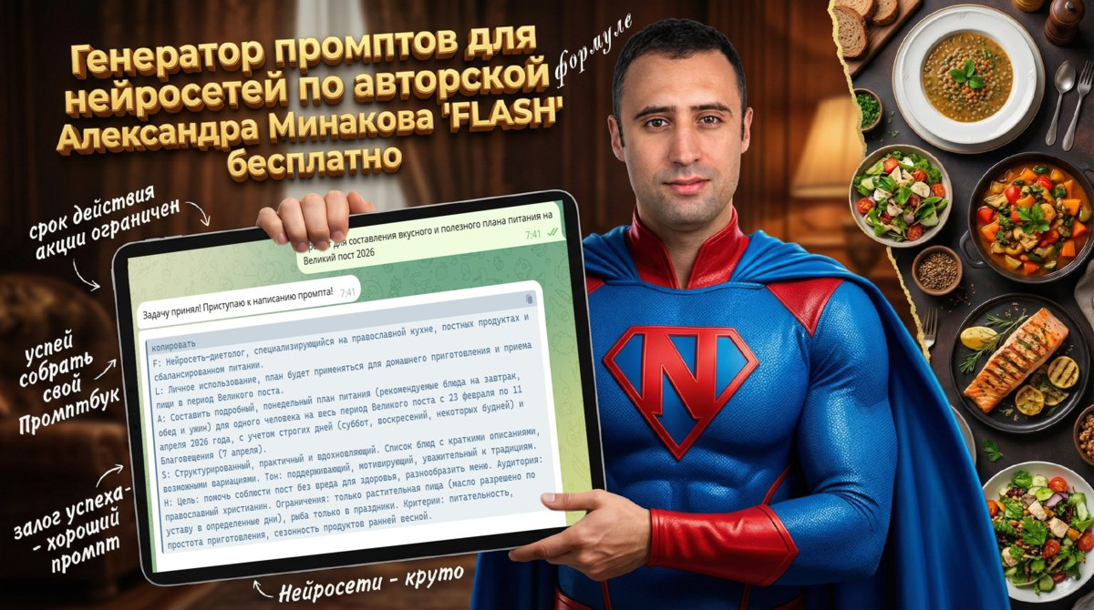 🔥 Друзья, всем привет! Сегодня я временно открыл доступ к своему боту Flash — генератору промптов по моей авторской формуле FLASH. Знакомо, когда промпт “вроде норм”, а на выходе: — вода и общие фразы 🤷♂️