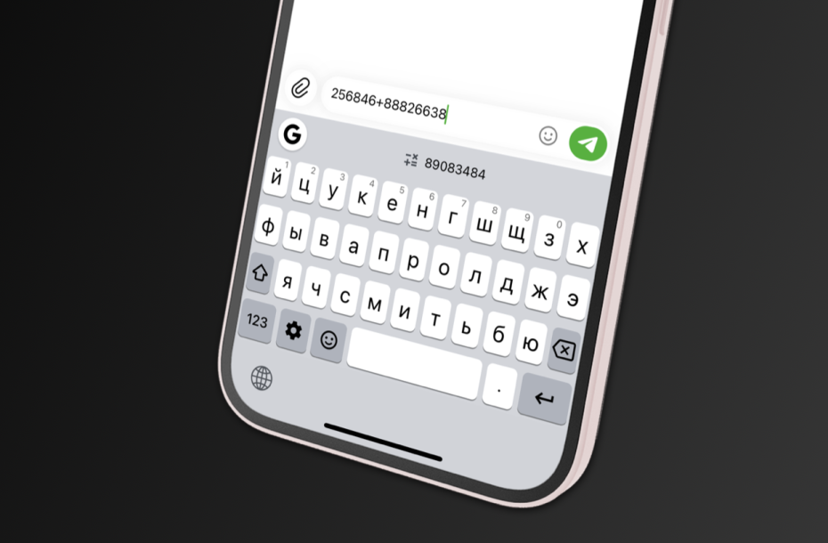 Согласно источнику, речь идет о встроенном калькуляторе. В свежей версии Gboard для iOS появилась возможность производить расчеты прямо в строке для набора текста — в любом приложении и режиме. Достаточно просто напечатать уравнение, и в «шапке» с предложениями текста появится результат. Его можно подставить в сообщение по нажатию, либо просто посмотреть и ничего не менять.