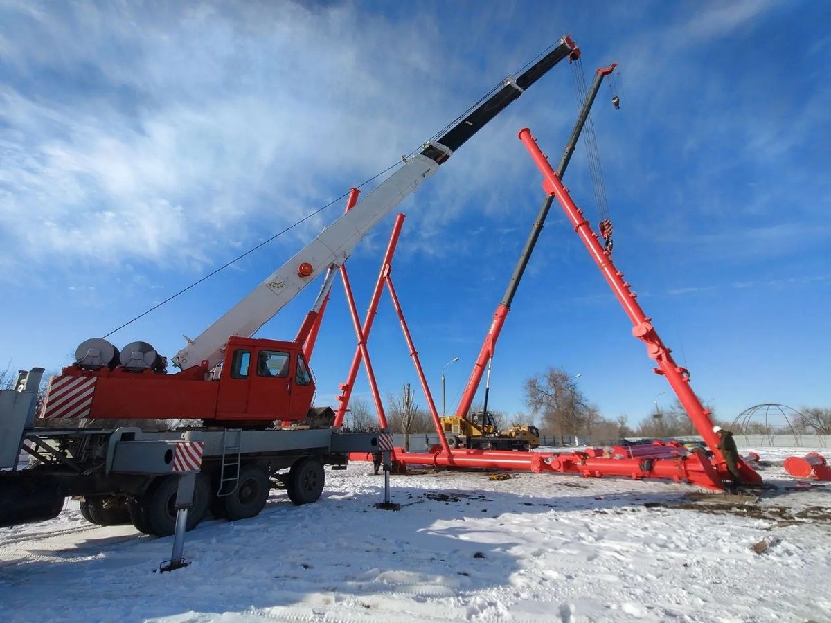 В Волгограде начали возводить 50-метровое колесо обозрения. Оно станет главным аттракционом нового парка в Красноармейском районе. Фото: ЦПКиО К монтажу 50-метрового колеса «Красное Солнце» приступили в Красноармейском районе Волгограда. Для монтажа опорных колонн колеса обозрения задействованы два крана грузоподъемностью 30 тонн и автовышка с вылетом стрелы до 35 метров. Следующий этап – сборка и монтаж центральной оси, окружности из 40 стрел длиной по 25 метров, 240 связующих элементов, внутреннего и внешнего ободов и других конструкций аттракциона. После чего специалисты установят 20 пассажирских кабинок. Перед открытием аттракцион пройдет проверку и получит государственную регистрацию, подтверждающую его исправное техническое состояние и безопасность. Колесо обозрения станет центральным объектом нового парка на бульваре Энгельса. Рядом с ним позже появятся «Циклон», «Диско», «Автодром», «Пиратский корабль» и другие популярные развлечения. Смотрим «Вести. Волгоград»: smotrim.ru/Volg