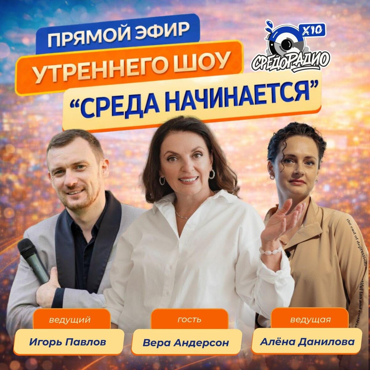 🔥 В пятницу, 27 февраля, в 11:00 по мск, в эфире утреннего шоу «СРЕДА НАЧИНАЕТСЯ» с Игорем Павловым и Алёной Даниловой — гостья, которая живёт на высоте смыслов и глубины 👇 🎙 ВЕРА АНДЕРСОН Предприниматель, коуч, психолог Человек, который соединяет бизнес, психологию и здоровые ценности, как единую систему роста: В экосистеме с 2018 года: • Руководитель программы Грандпрактики • Лидер в РRO-женщин, г.Санкт-Петербург • Школа Клампера 6.0 • Старший хранитель Школы Клампера 7.0 • Ассистент профессора на Бизнес кафедре, 2 поток • Зам. декана на Бизнес кафедре, 3 поток • Факультет начинающих предпринимателей • Факультет Публичных выступлений • Код Рыбакова • Участник Совета Открытых Программ Глобального Университета • Факультет Управления 🌍 Личный масштаб: Руководитель " Яндекс-Недвижимость" в Санкт- Петербурге Спикер Института ритмо-резонансных исследований Спикер конгрессов ООН в Санкт-Петербурге Экспонент выставок в Союзе Художников, Санкт-Петербург — сидела в жерле вулкана на К