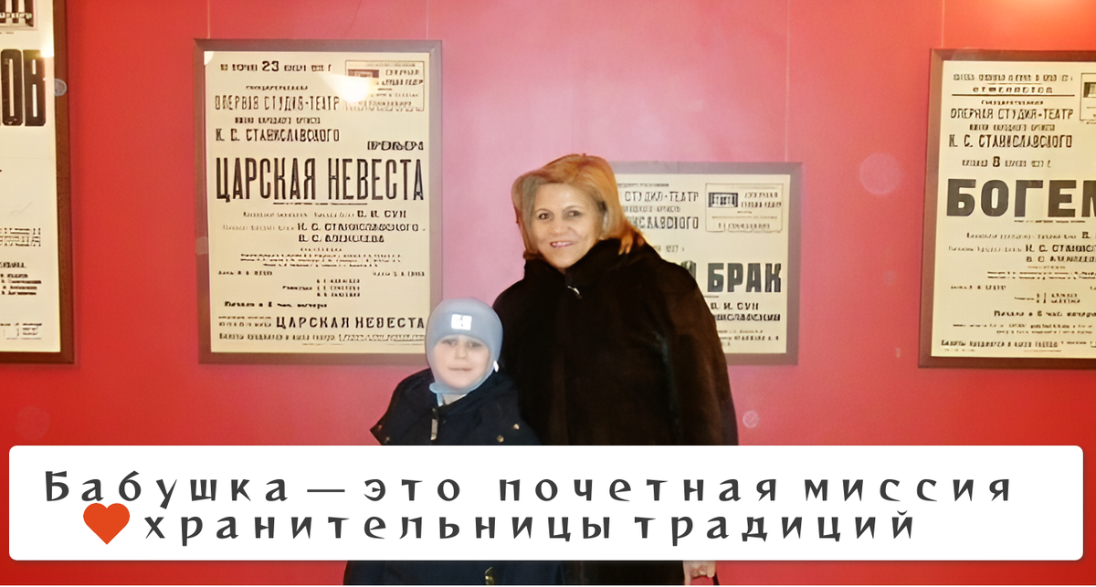 Да, в семье я с гордостью ношу статус бабушки: старшему внуку 25 лет и на фото мы с ним в театре им. Станиславского и Немировича-Данченко после спектакля «Сказка о царе Салтане». Это моя привилегия, моя любовь и моя эволюционная миссия, как бы пафосно это не звучало. Но выходя за порог дома, я становлюсь Дамой — носителем того самого накопленного опыта и достоинства, на котором построена цивилизация.
